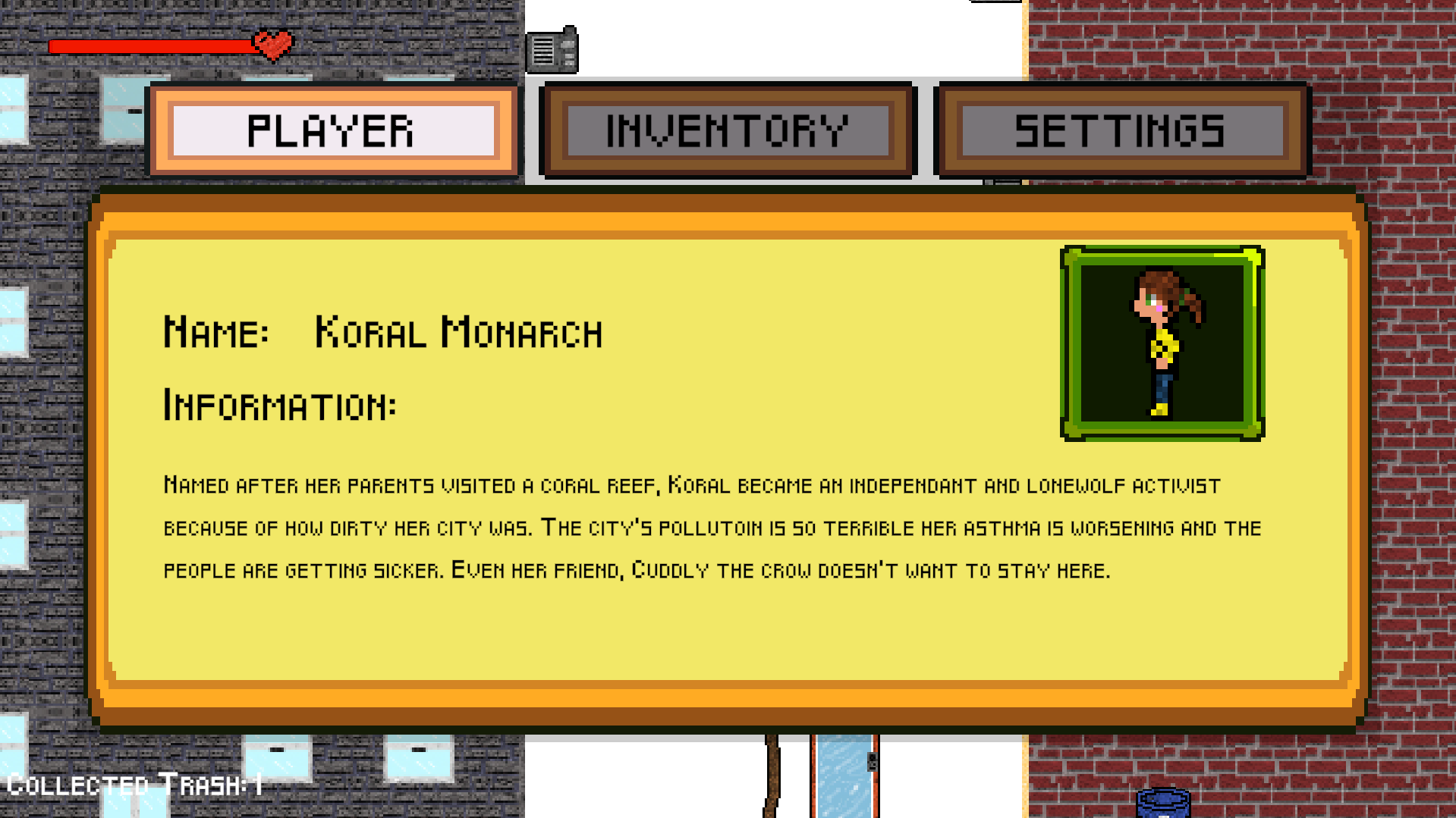This 2D vertical platformer with a relaxing feel is about Koral, an activist navigating her city and making a positive change both for its people and for herself but eventually she will learn that to tackle things out of reach she must work quick.